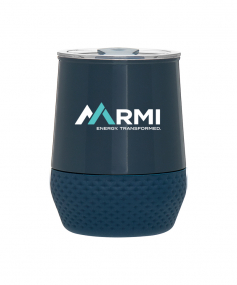12 oz double wall 18/8 stainless steel thermal tumbler with copper vacuum insulation, push-on lid, matching swivel closure, and removable silicone base.