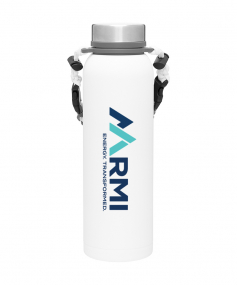 32 oz double wall 18/8 stainless steel thermal bottle with copper vacuum insulation, insulated stainless steel threaded lid, silicone ring, removable strap with buckles, removable clasps, and powder coated finish. Individual gift box. Hand wash recommended. Do not microwave. Complies with FDA, Prop 65. 11" H x 3.1875" W