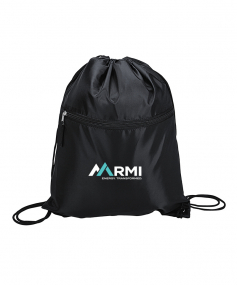 Sport bag with a contrast color front-zippered pocket, reinforced corners and a drawstring closure. Drawstrings double as backpack straps. 12 1/2" W x 15 1/2" H x 3/16" D.