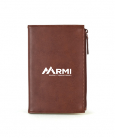 Stylish executive notebook with PU/split leather outer and suede inner cover. Features large zipper pocket (fits up to iPhone 7S Plus). Includes 80-sheet replaceable notebook. 5 3/4" H x 8 1/2" H